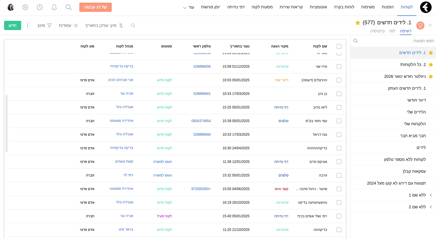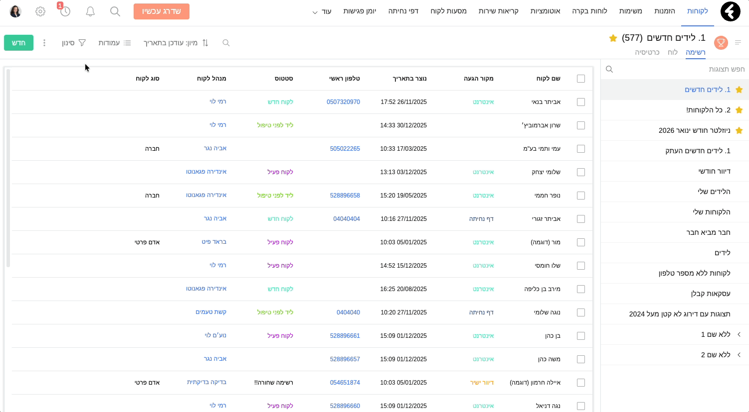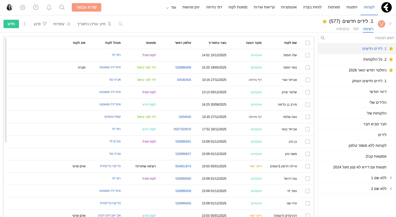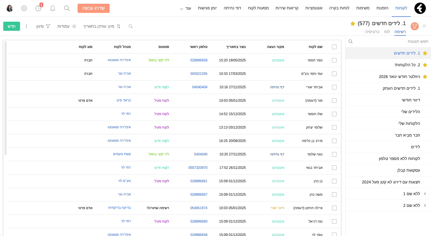 ע״י לחיצה על לוגו המערכת ניתן לצפות ברשומות האחרונות בהן נעשה שימוש. כך תוכלו לנווט בין רשומות רלוונטיות שנצפו לאחרונה בקלות ובמהירות. כמו כן, ניתן לצפות בתצוגות מועדפות. ברשימה השמאלית מופיעות התצוגות המועדפות שסומנו בכוכב. לחיצה על כל אחת מהתצוגות תפנה אתכם ישירות לתצוגה זו.