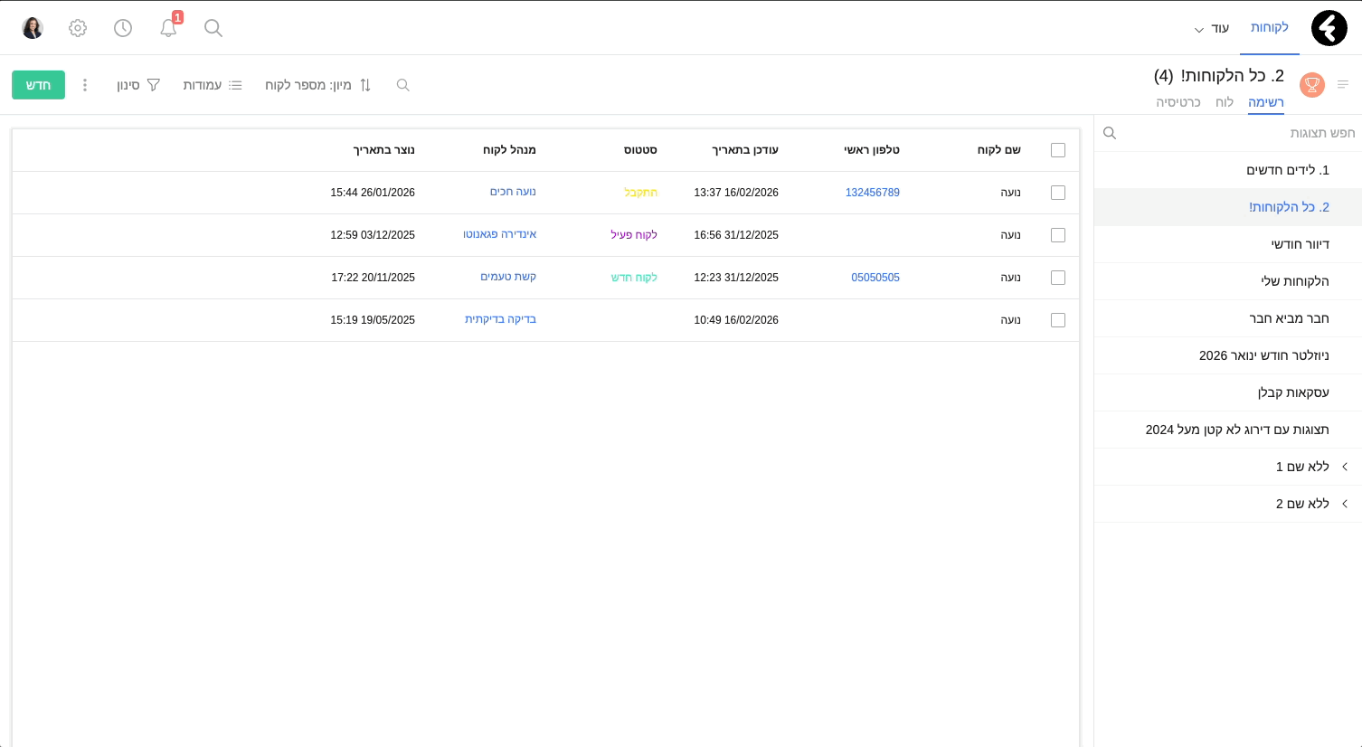 - כניסה לרשומה המקושרת (לדוגמה איש קשר) בלחיצה עליה