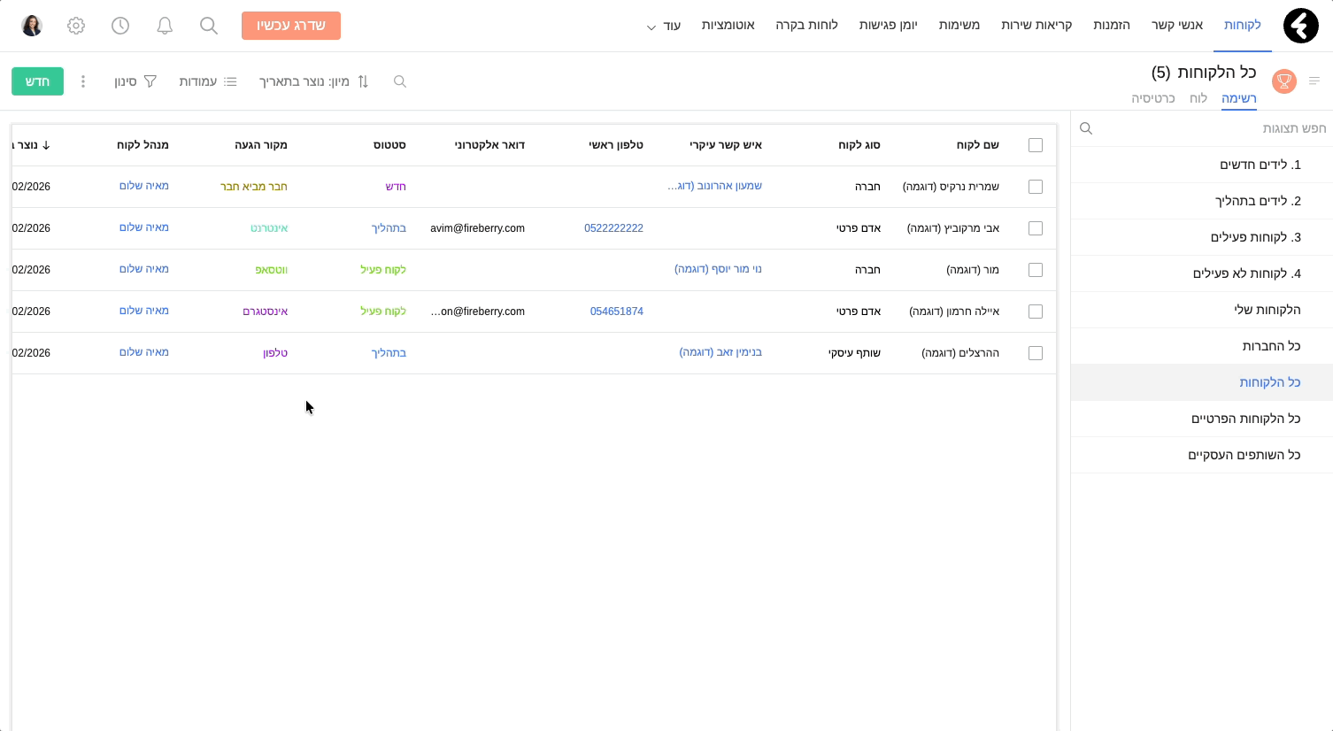 התאמת סרגל ראשי וניווט במערכת Fireberry