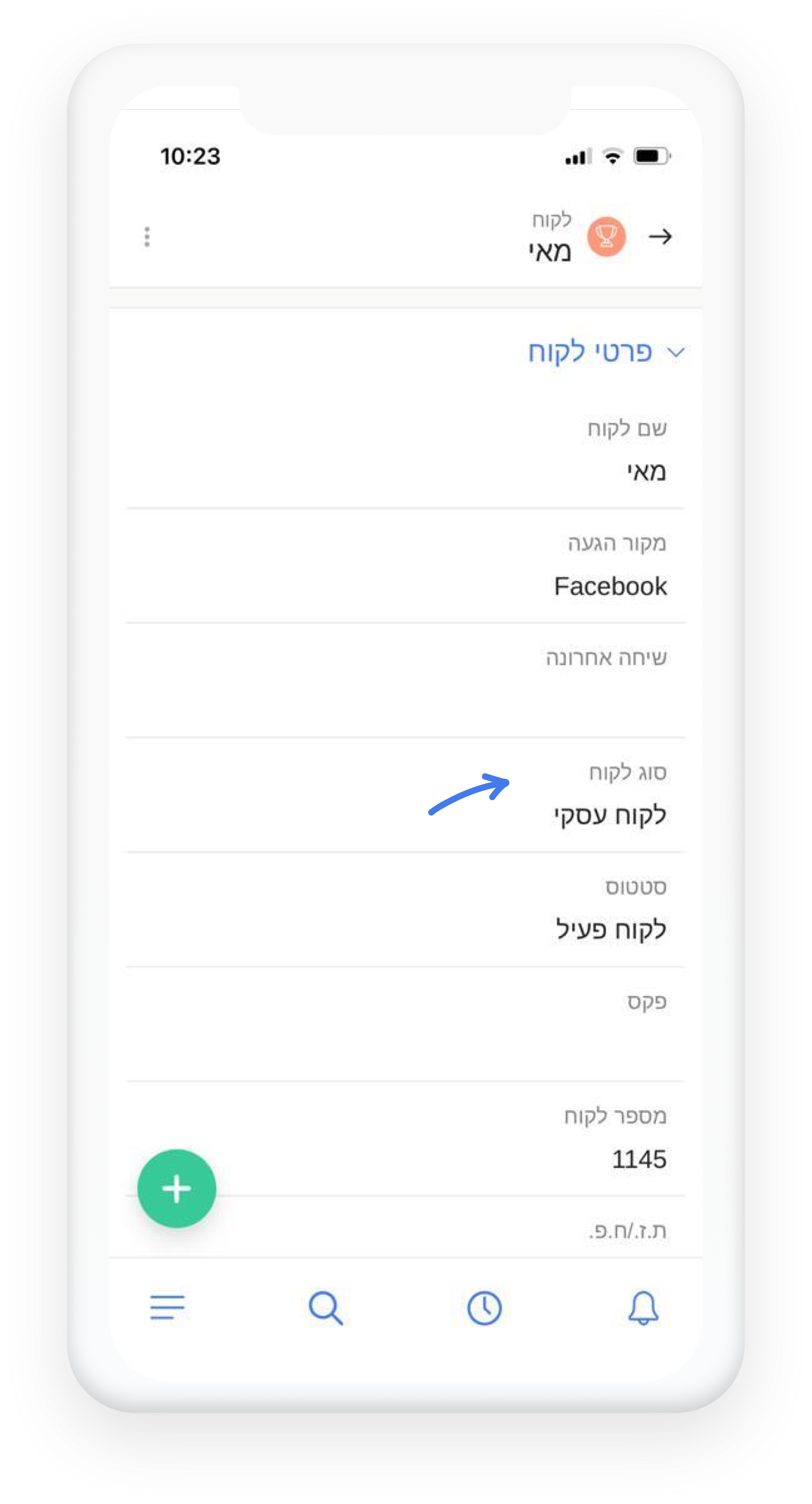 ראשית יש ללחוץ על שדה "סוג לקוח":