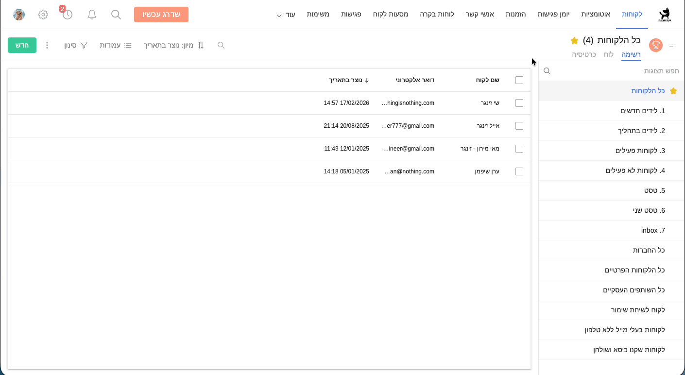 - מתי - רשומת לקוח נוצרה