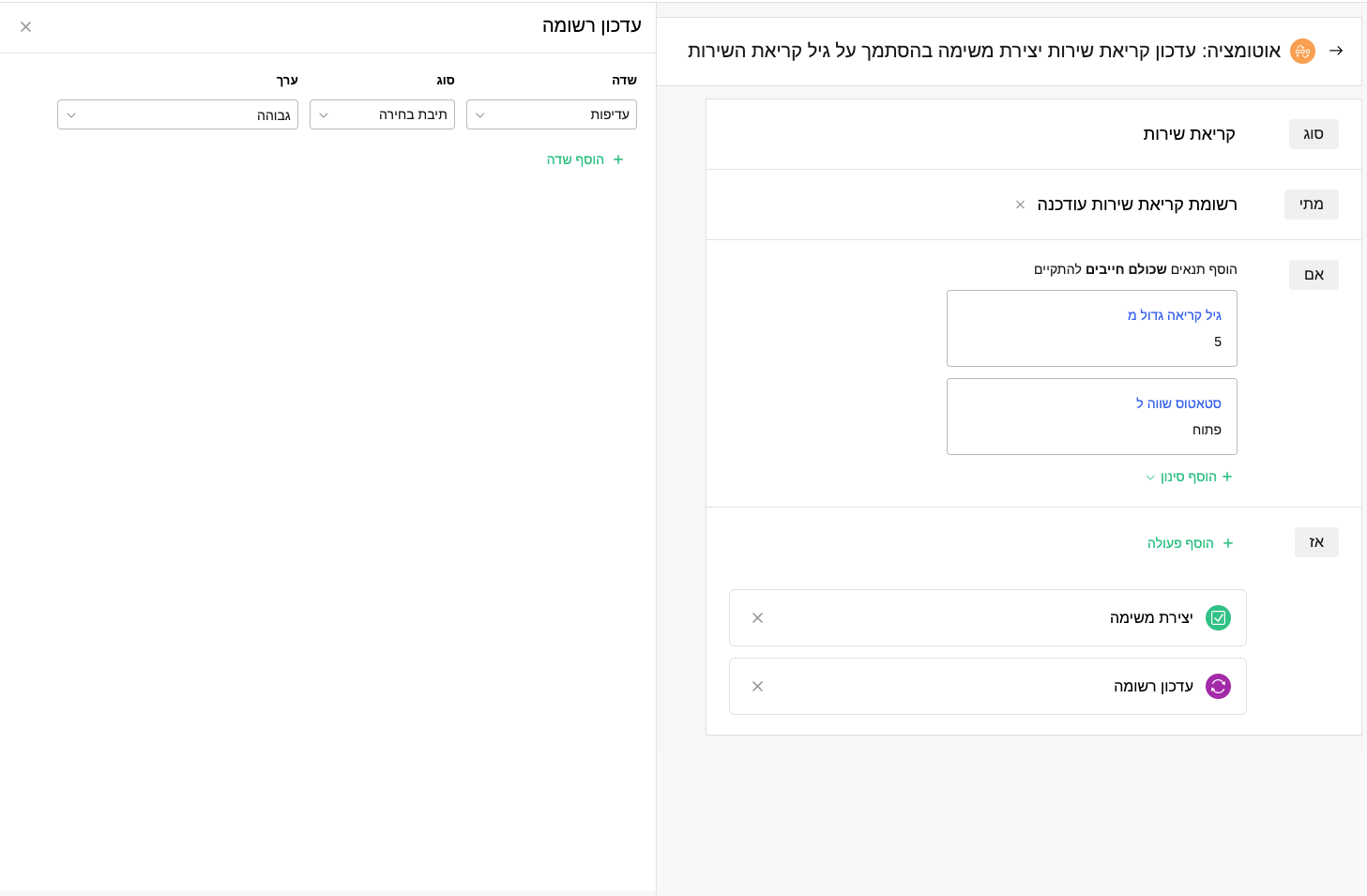 - עדכון רשומה - שדה ״עדיפות״