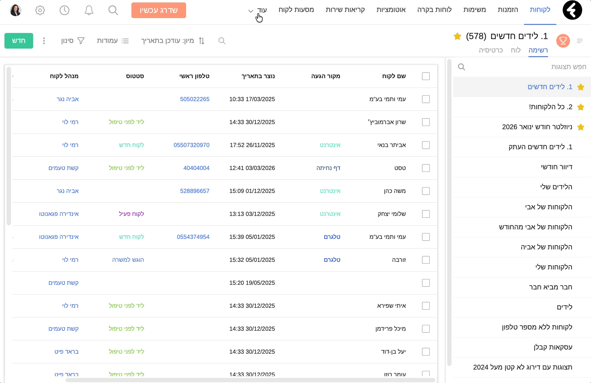 היכנסו לאובייקט ״הנהלת חשבונות״ אשר בתפריט הראשי. במידה ואובייקט זה אינו מופיע בתפריט הראשי, לחצו על "עוד" ומצאו אותו בתפריט.