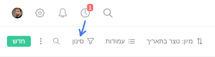 לחצו על סינון מצד שמאל בתצוגה שזה עתה יצרתם.
