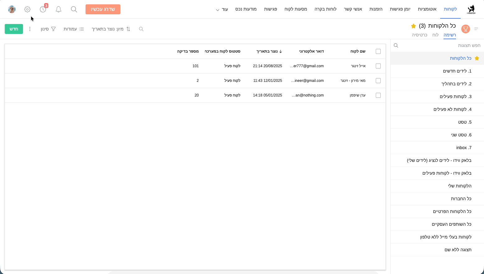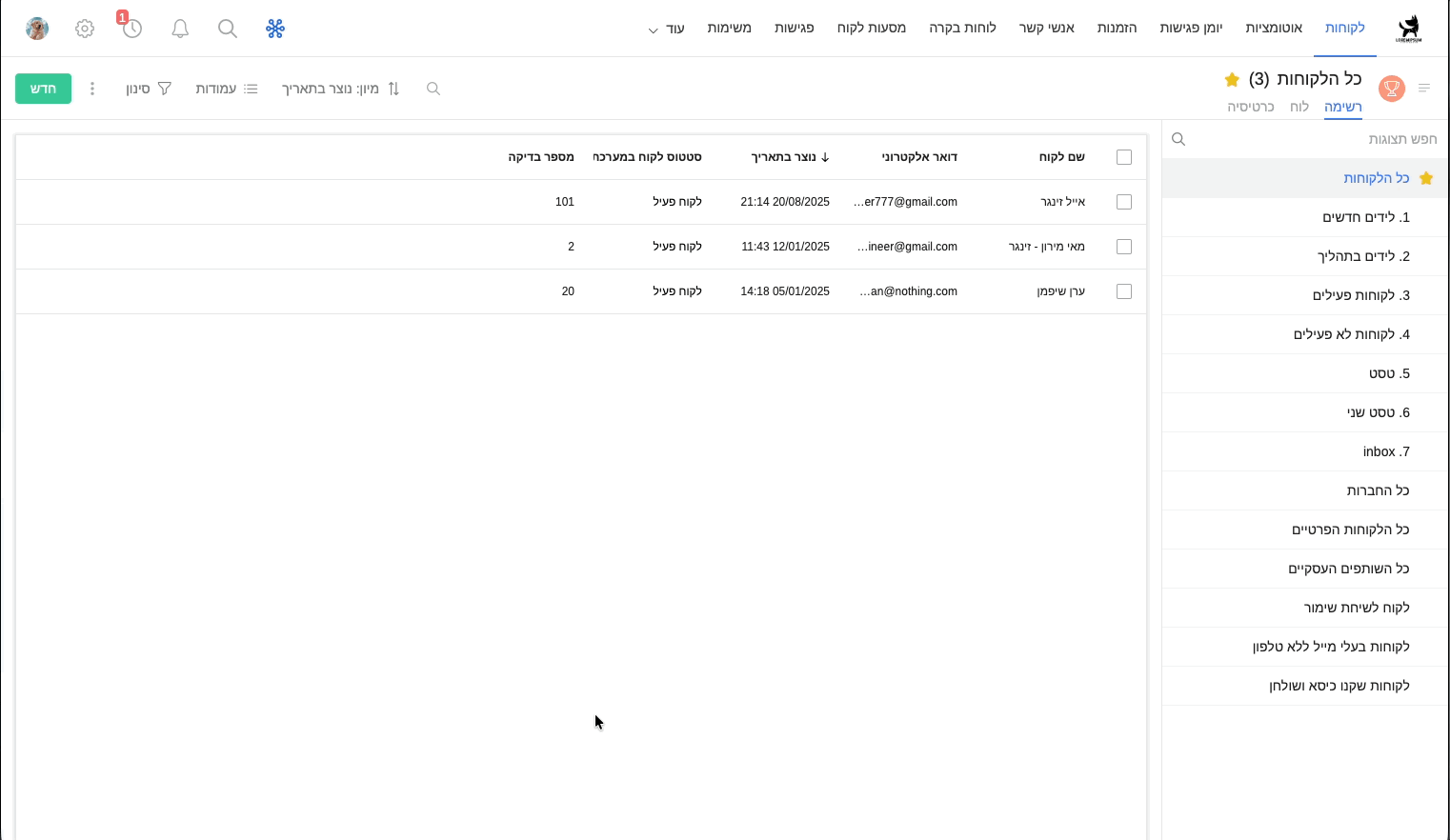 • פירוט שיחות: כל שיחה מתועדת במערכת- מי ביצע אותה, כמה זמן ארכה, סטטוס השיחה ועוד.
